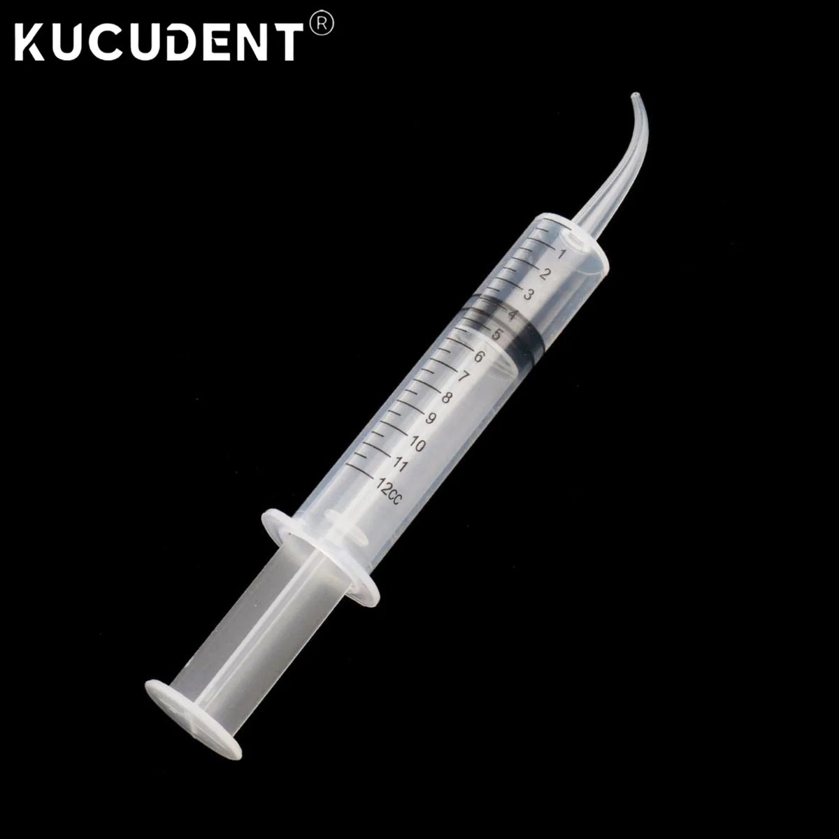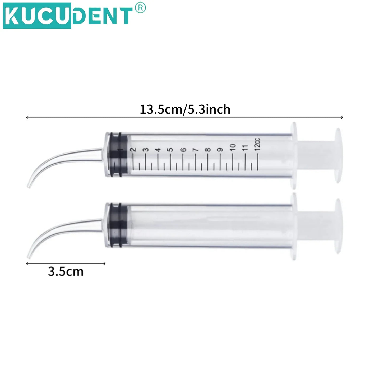5pcs Dental Irrigation Syringe With Curved Tip 12ml Tip Diameter 1.9mm Disposable Impression Syringes for Dentist Use Oral Care - with scale