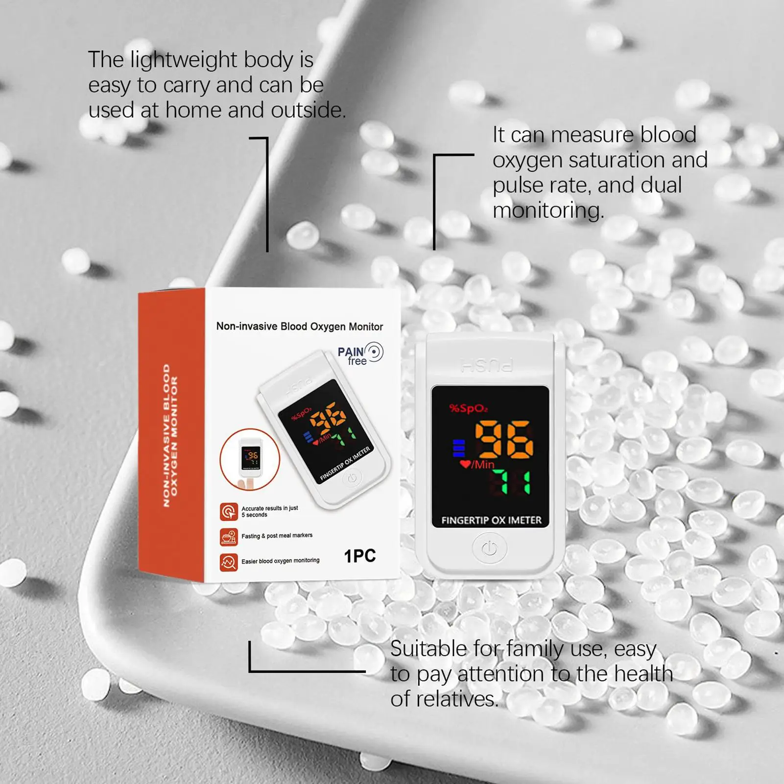 2025 Oxygen Monitor Non Invasive Home Oxygen Monitor Portable Fingertip Pulse Oximeter Device for Fitness Elderly Care Pre-Meal